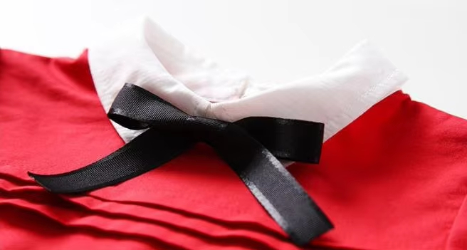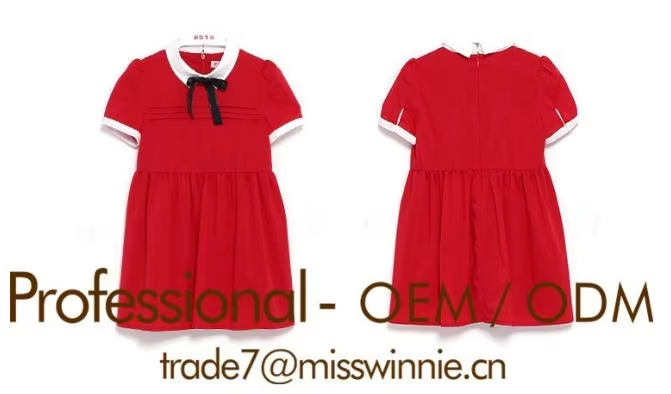 2024 Beby Red Princess Dress for Children Casual Summer Mini Dress With Short Sleeves Cotton Fabric and Bow Decoration