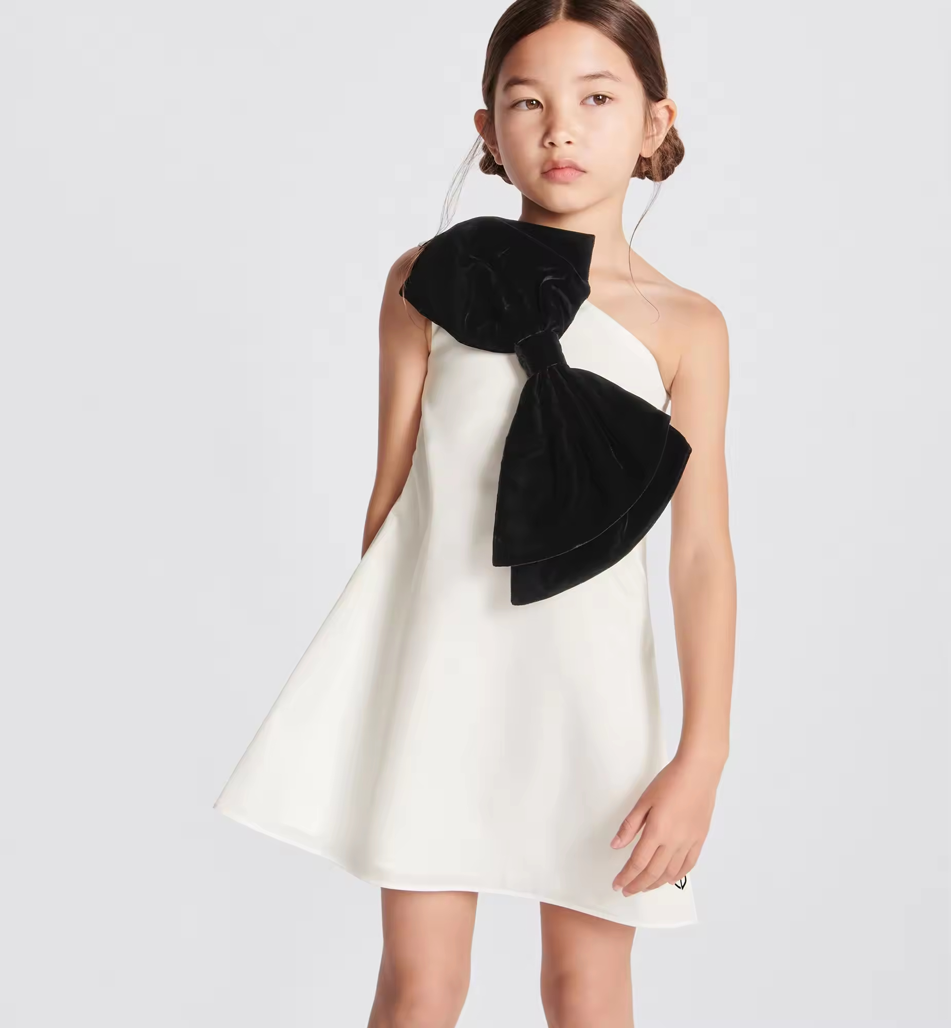 Custom Girls' Summer Dress With Sleeveless One-Shoulder O-Neck Design Solid Pattern T-Shirt With Matching Bow Ages 1-8 Years