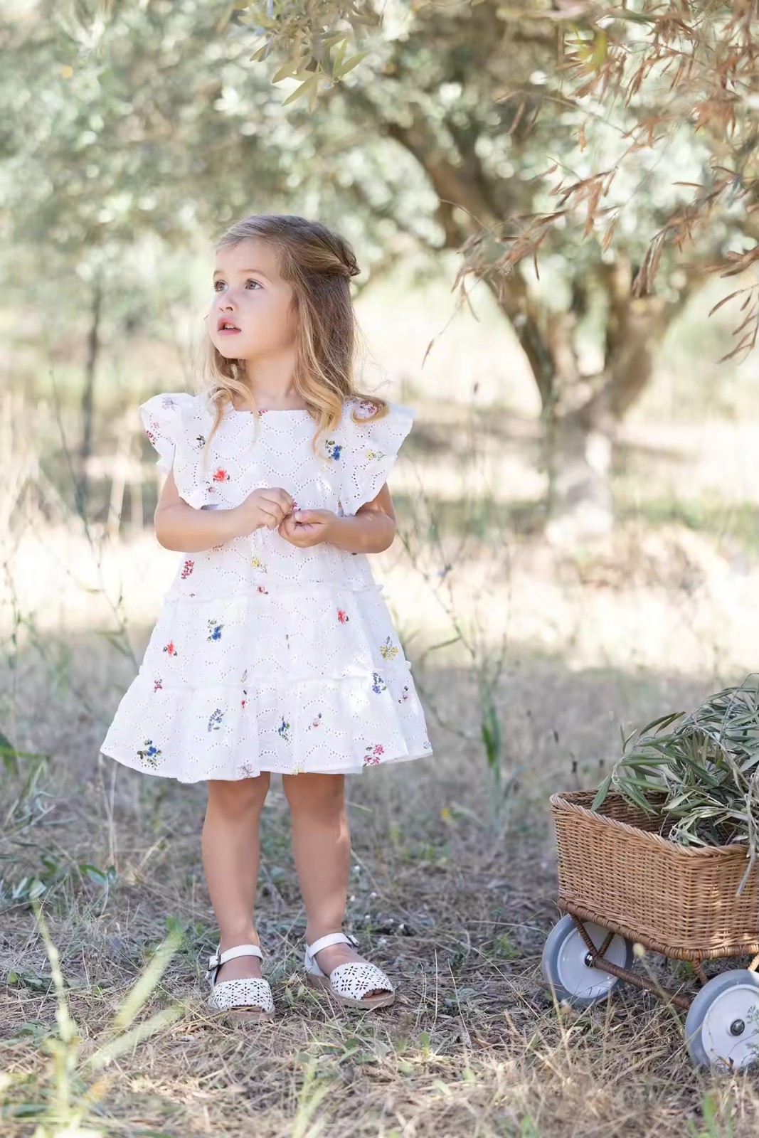 2025 Cute Style Sweet Summer European Dresses for Kids Eyelet With Print Toddler Dress for Girls 1 to 5 Age