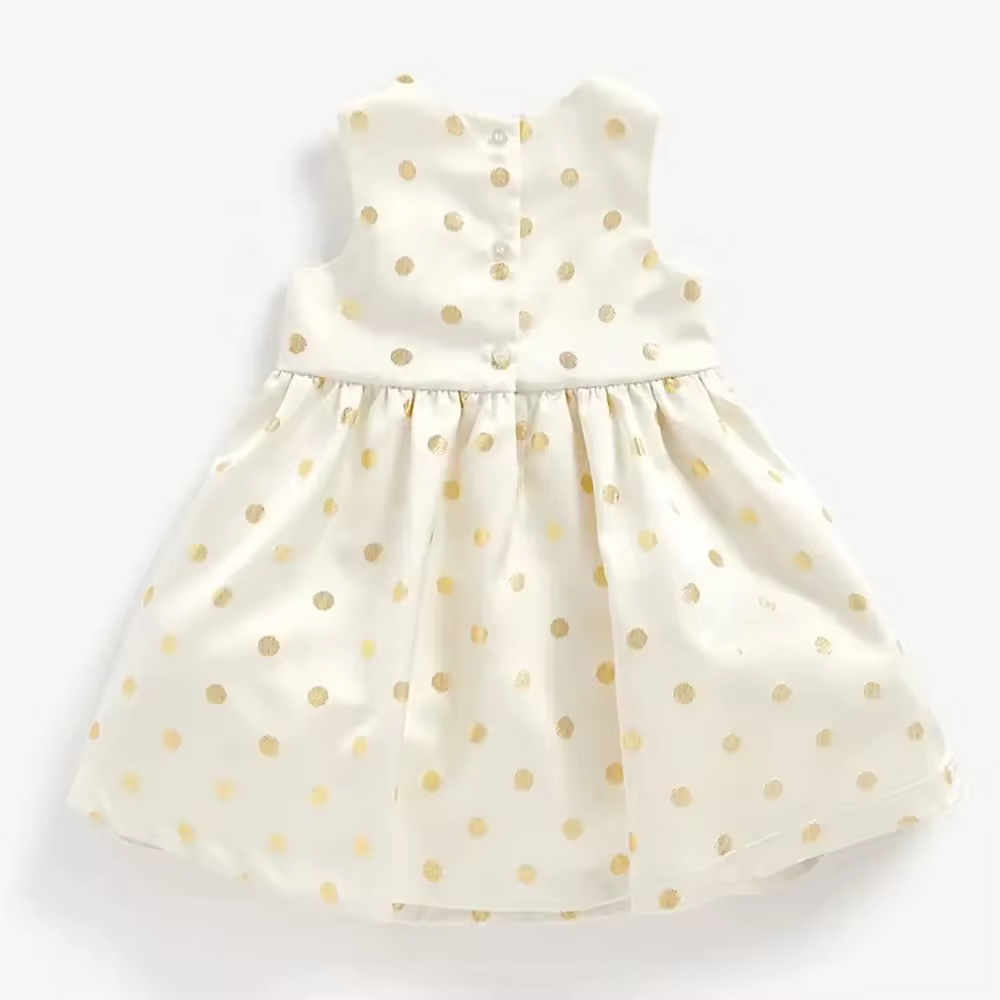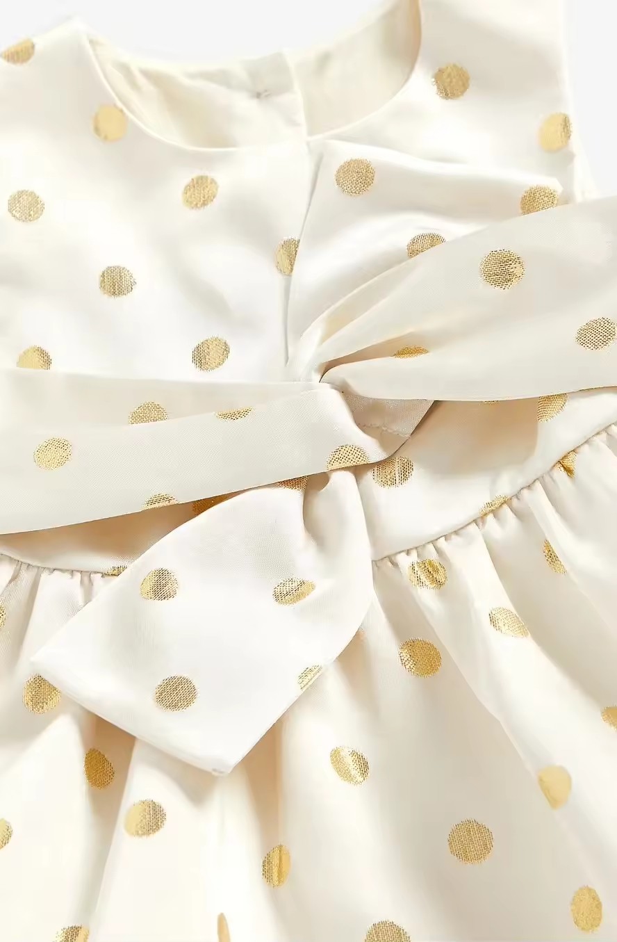 2024 New Arrival Satin White Children Girls Dresses With Dot High Quality Boutique Toddler Baby Girl Dress Kids Clothing Factory