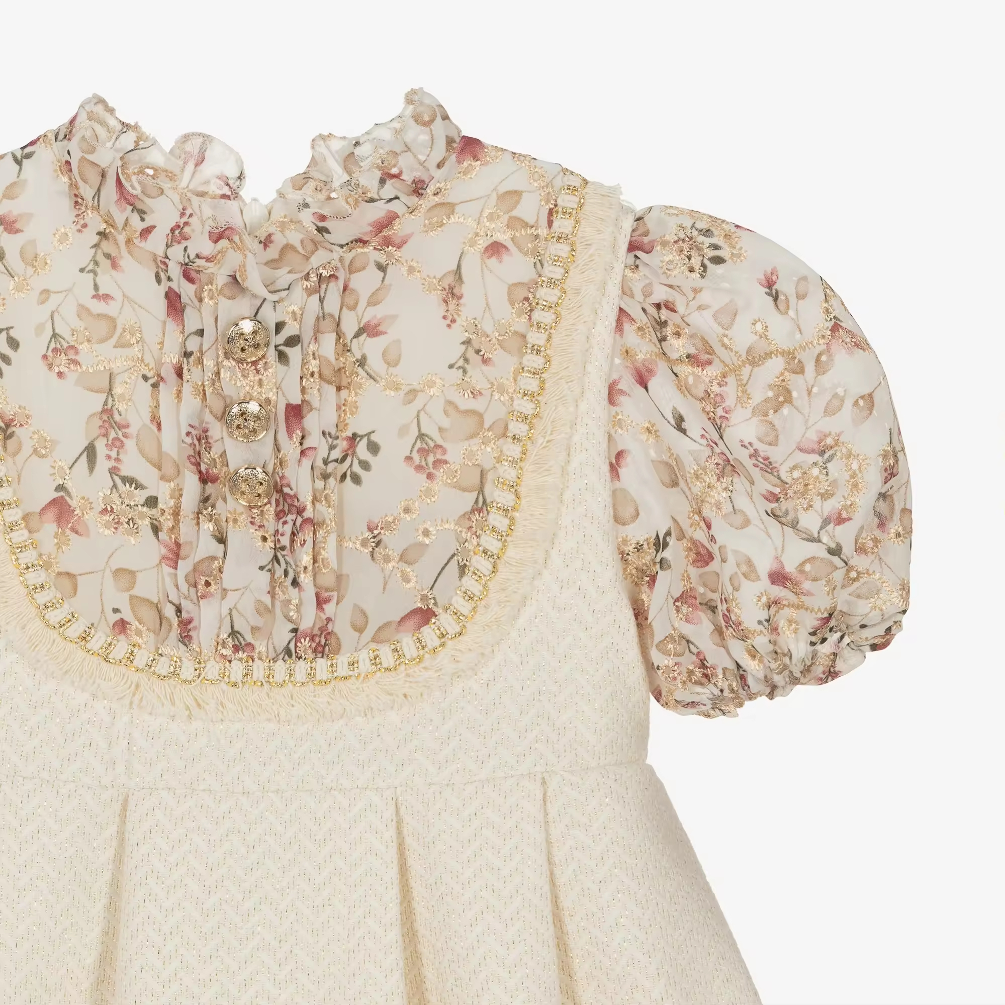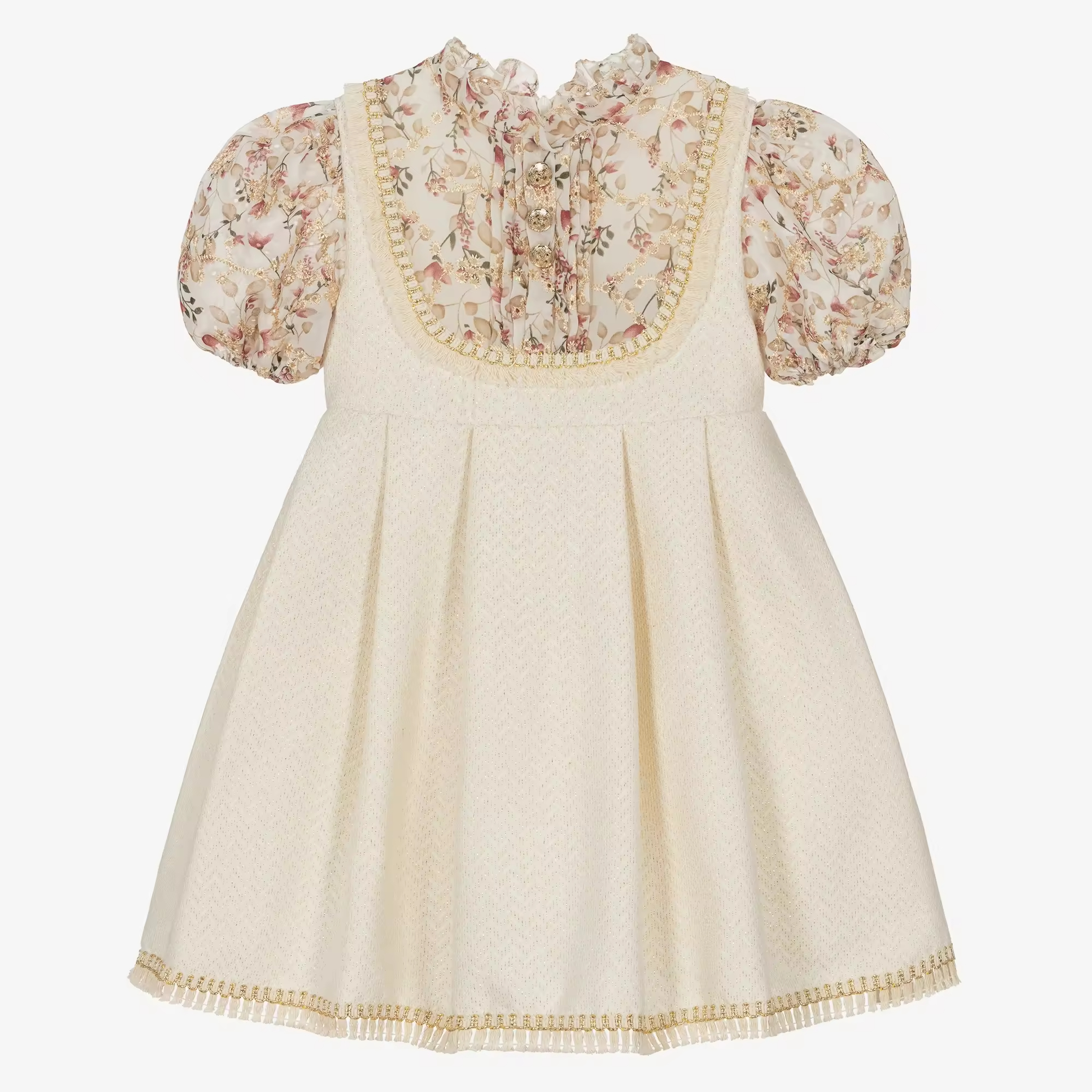 Custom High Quality White Children Girls Dresses Suspender Skirt With Flower Printed Spanish Style Kids Clothing Factory