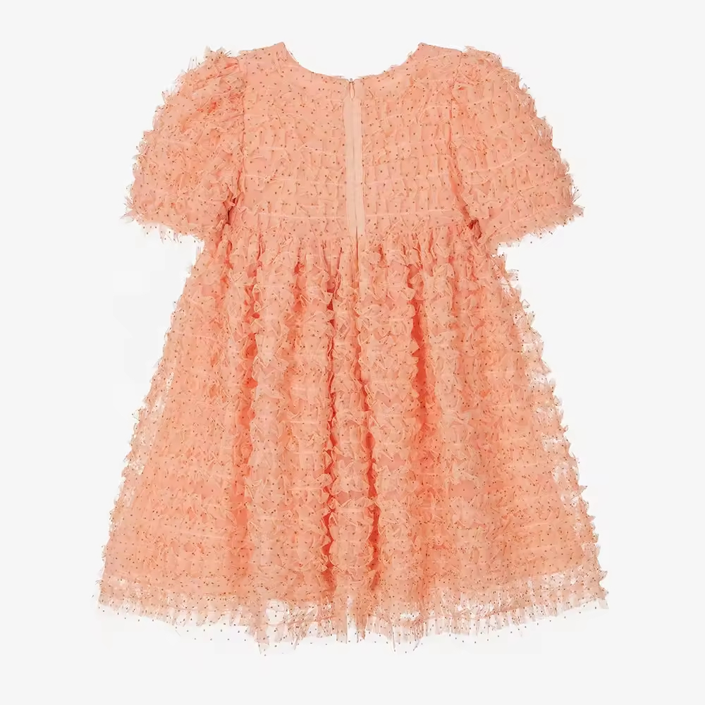 Custom Orange Kids Frock Lace Girls Dresses for Birthday Party Children Baby Girl Dress With Sequin in Spring Summer