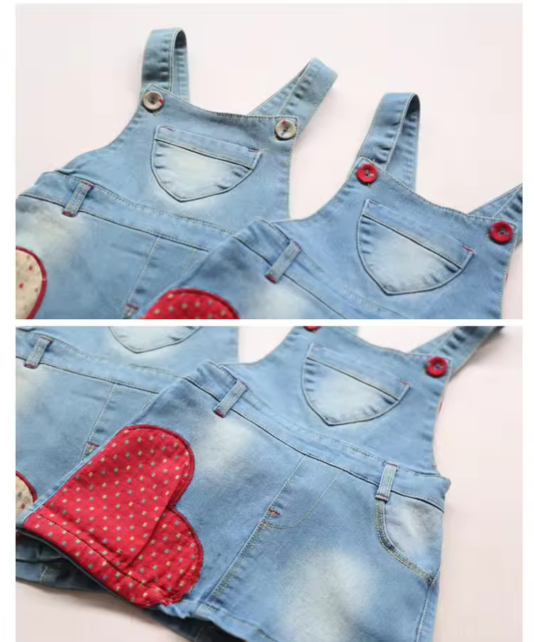 High Quality Kids Jeans Dress with Embroidered Applique Light Wash Wholesale for Girls Clothes