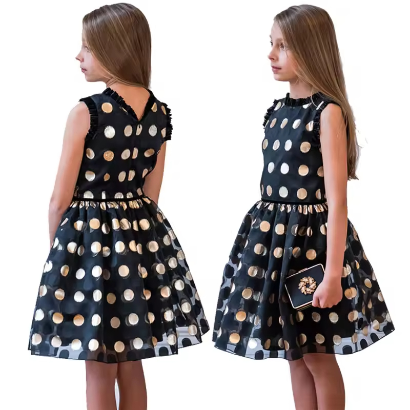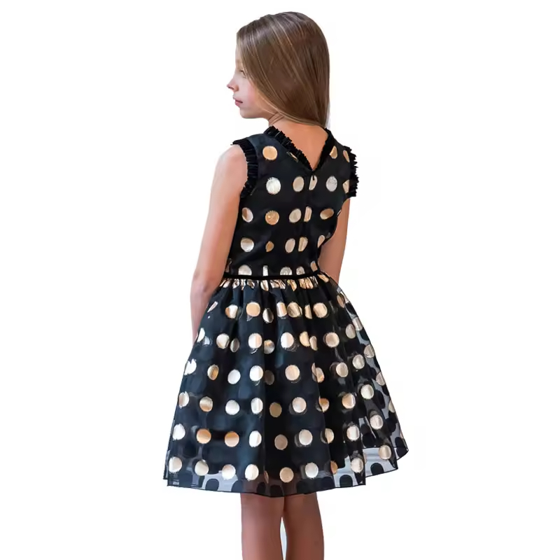 1.Girls Dress in White/black color, quality cotton fabric and a vintage style.