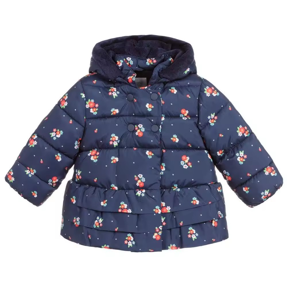 Customized Girls' Winter Cotton Coats for Children Thick Coats for Girls Cotton Coats Pure Pattern Ruffled Casual Style