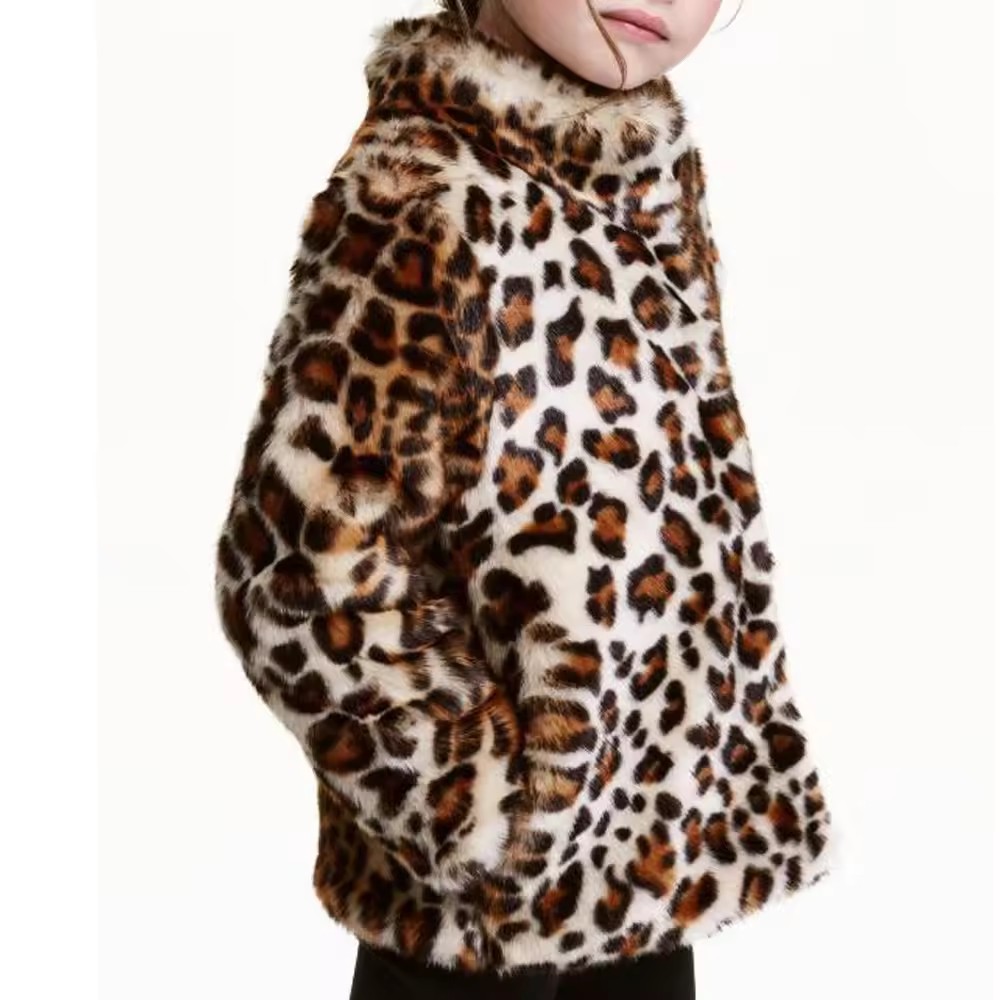 Fashion Jacket Style Children Winter Jacket Leopard Faux Fur Coats