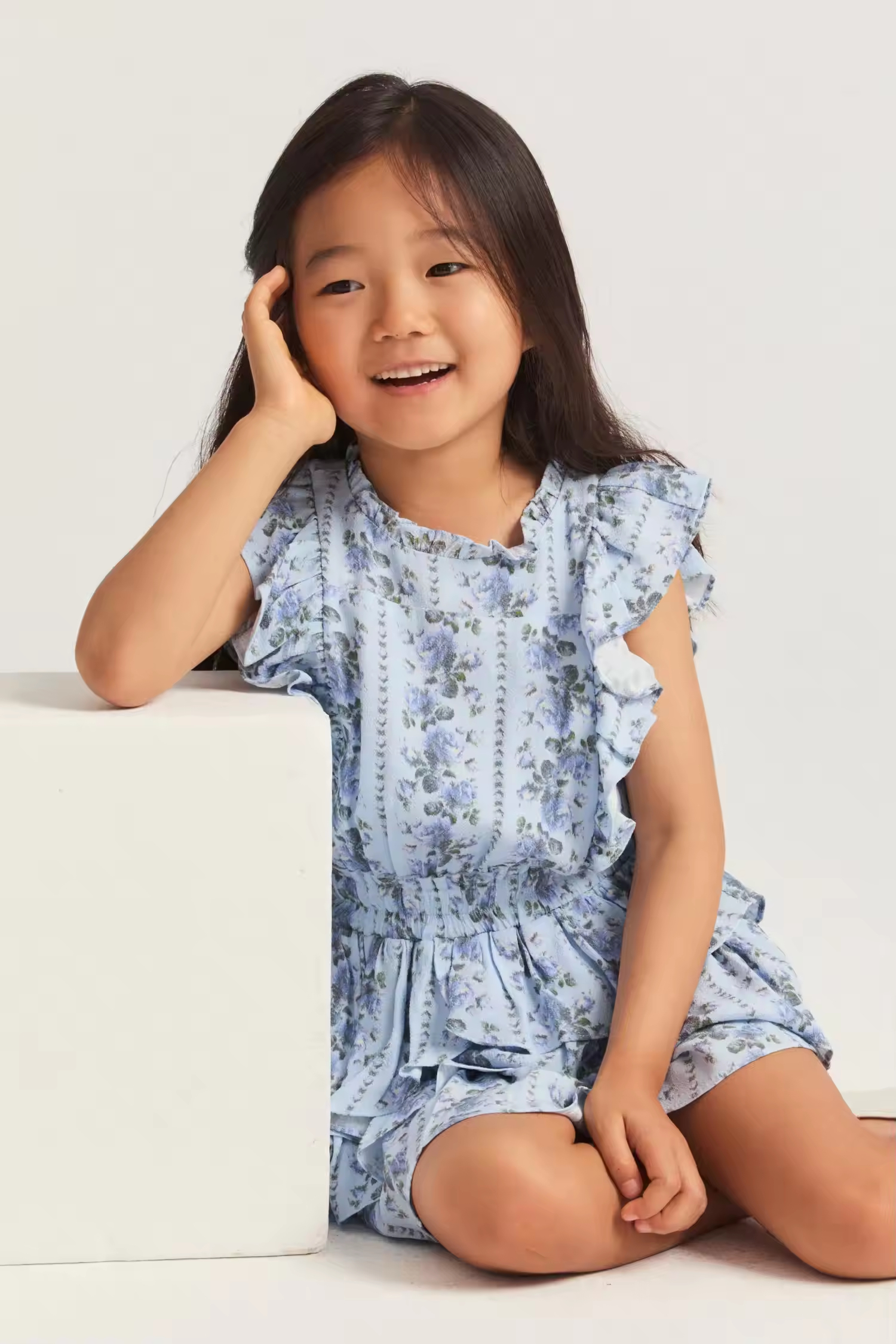 Children Dress Pretty Flowers Design Customized Prints Latest Party Wear Dresses for Girls