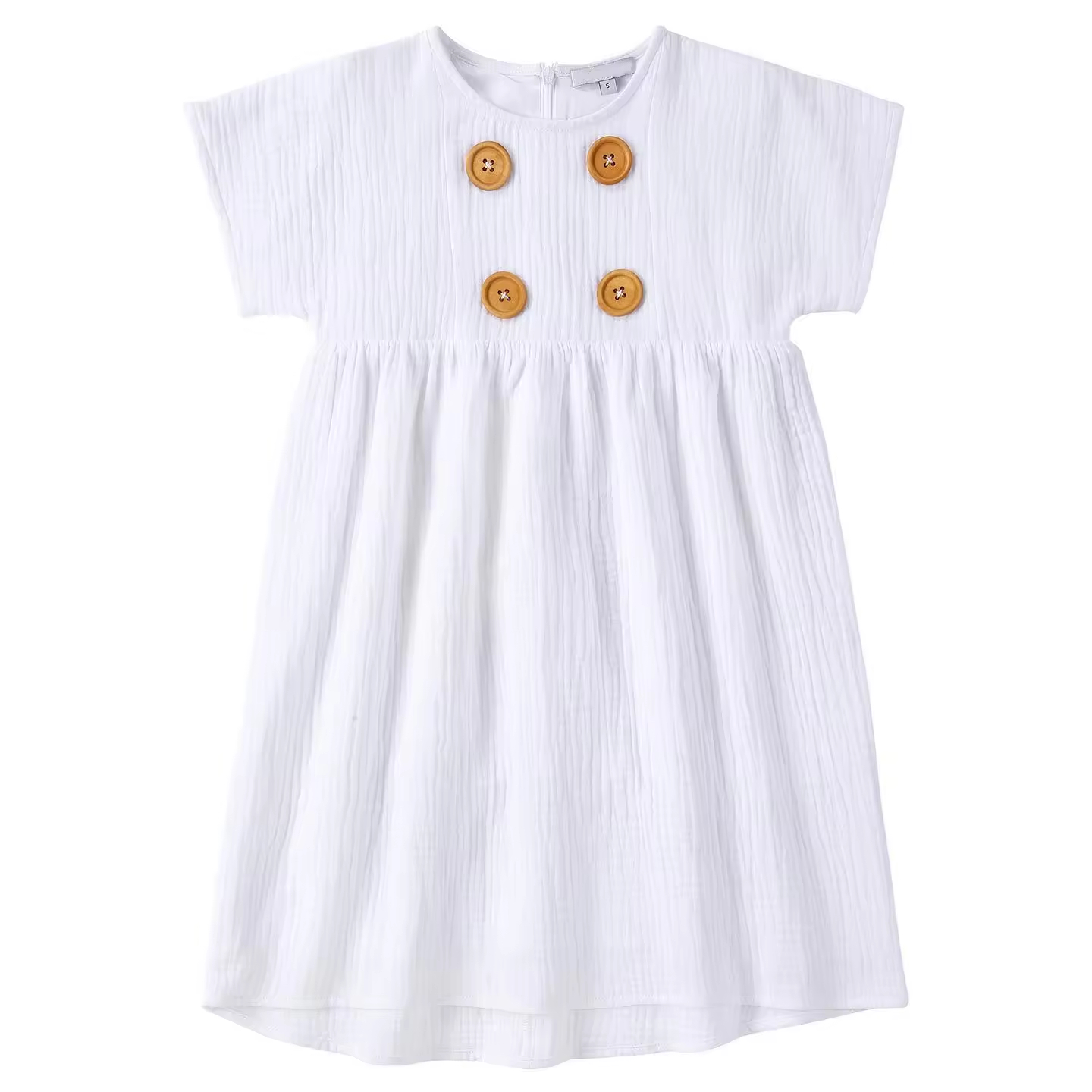 Short Sleeve Cotton Dress for Seven-Year-Old Girls Frocks for Children