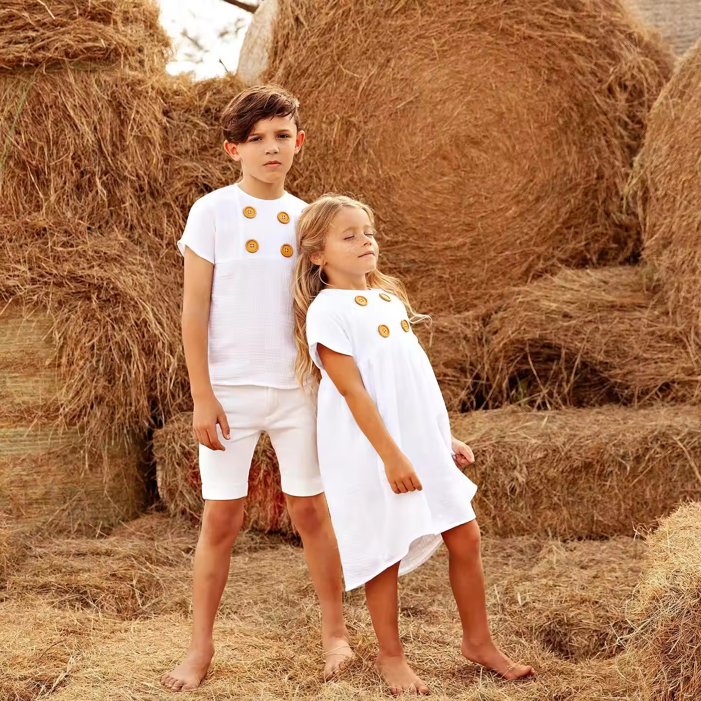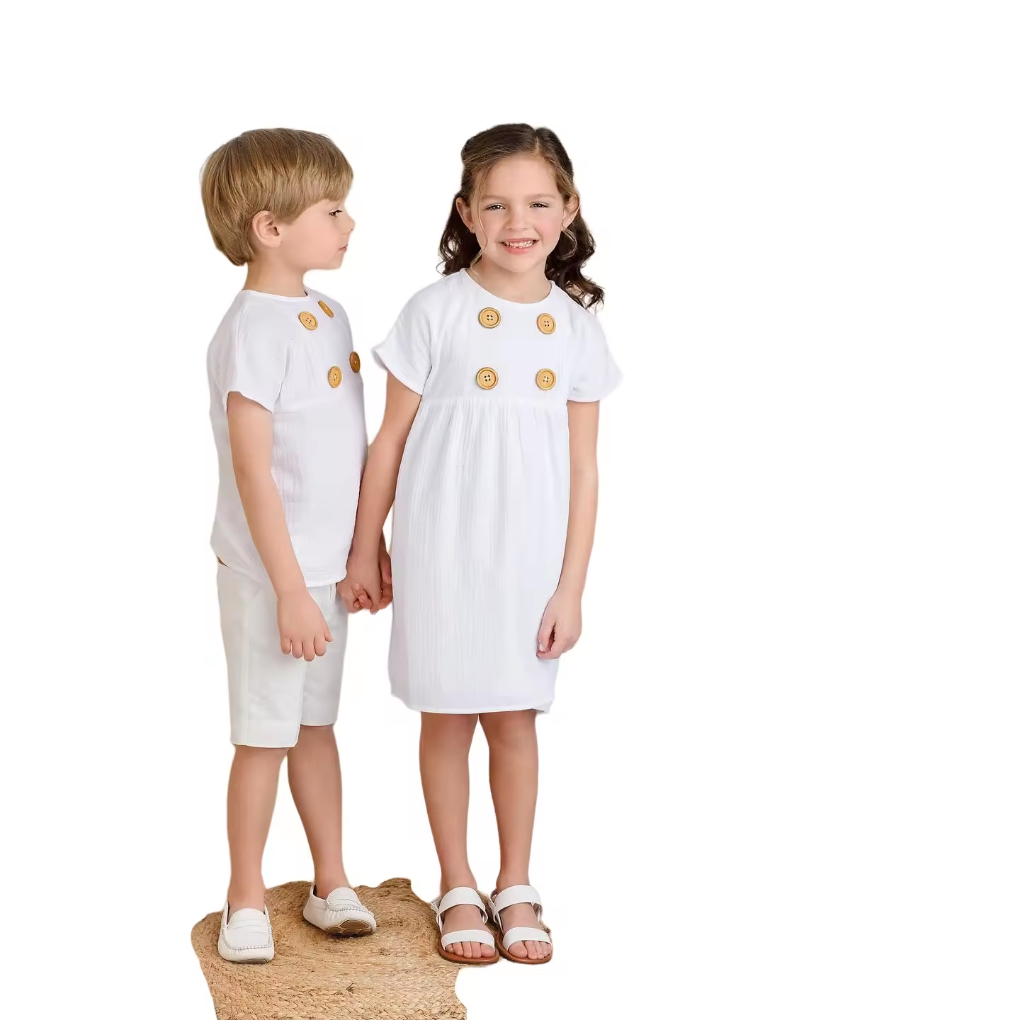 /ODM Toddler Kids Boys Girls Clothing Muslin Girls Short Casual Dress Matching Kids Shirt Tops Brother Sister Children Clothing