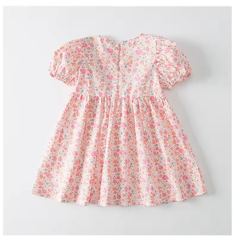 /Customized Wholesale Girls Dress Backless Floral Simple Smock with Ruffle Sleeves Knee-Length A-Line Dress for Babies