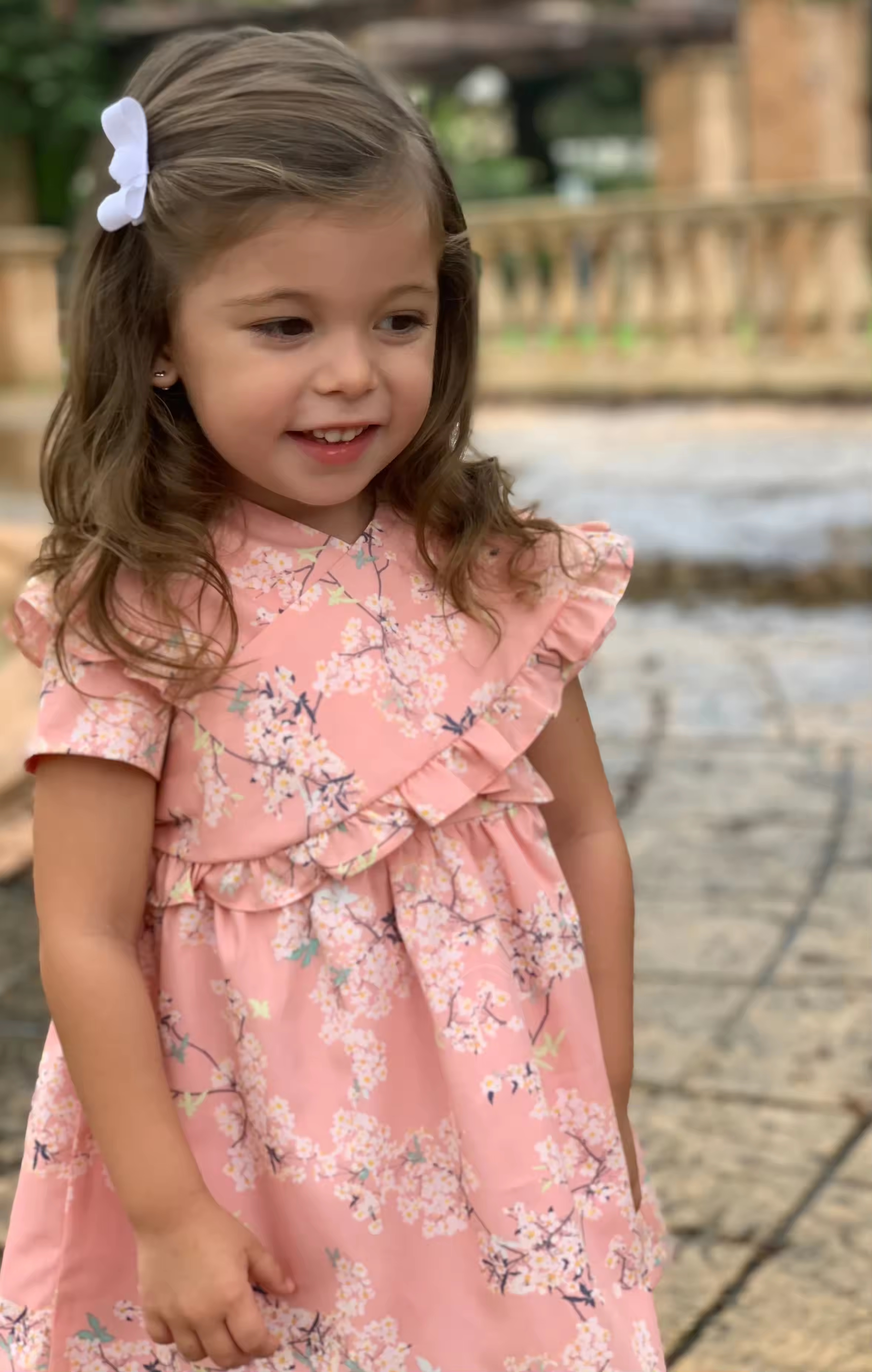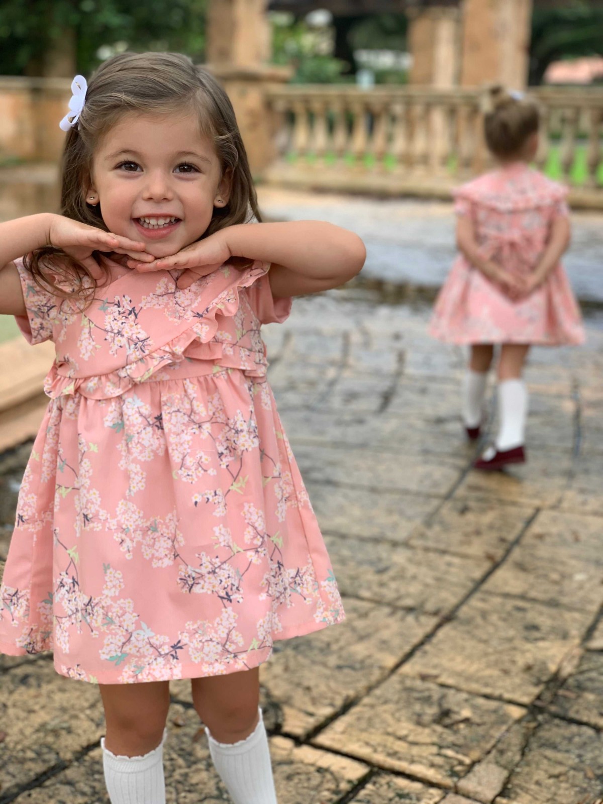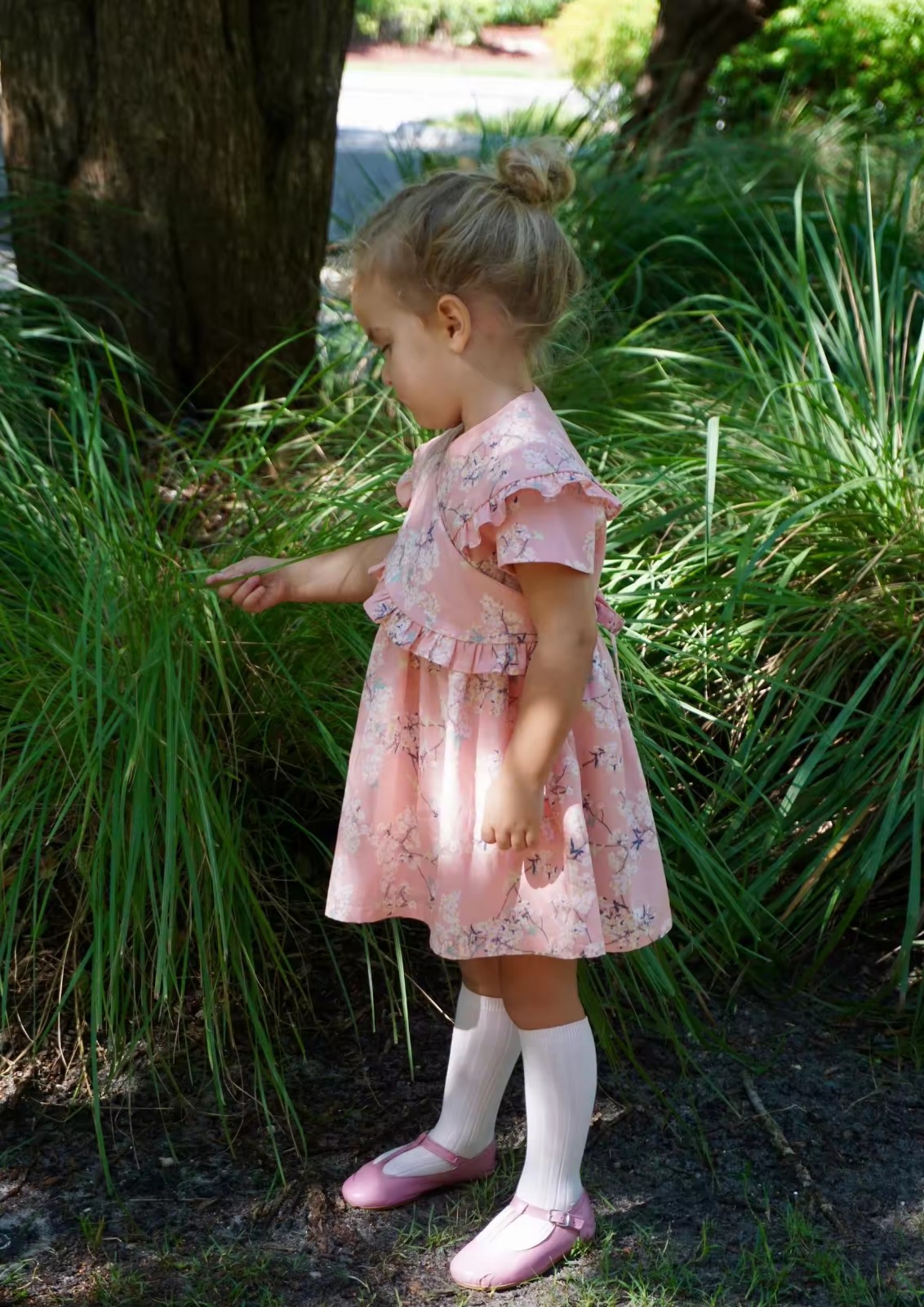 Custom Dusty pink Floral Kids Girl Child Dresses for Girls Short Sleeve Summer Collection Cotton Baby Toddler Dresses Factory