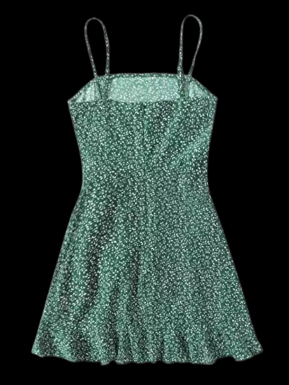 Girls ODM Ditsy Floral Print Mini Dress with Spaghetti Strap Ruffle Trim and Tie Side Woven Fabric for Children