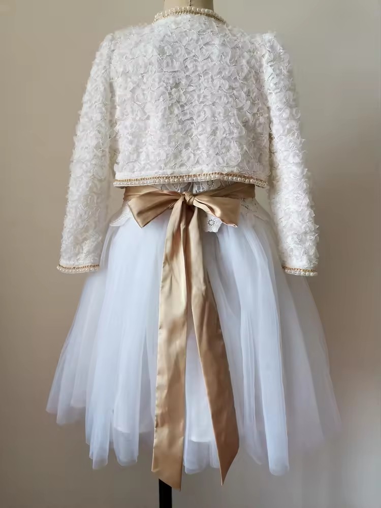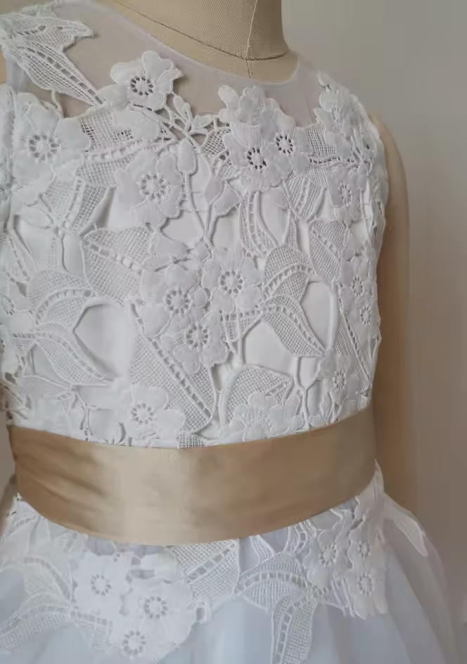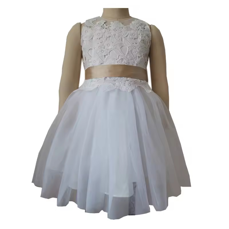 Fashion Elegant Flowers Patch Work Children Party Dress Clothes Baby Toddler Gown Birthday Wedding Flower Girls Dress With Belt