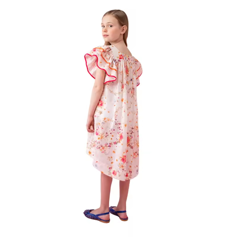 Clothing Manufacturers Custom Kids Clothing Girls Casual Floral Dresses Ruffle Cuffs Summer Dresses for Girls