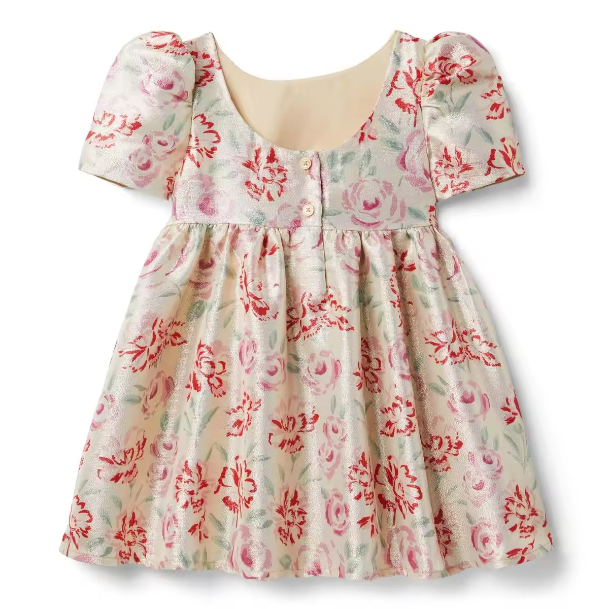 /Custom Rose Floral Print Kids Cotton Dress Wear With Puffy Sleeve Spring Casual Style Toddler Dresses