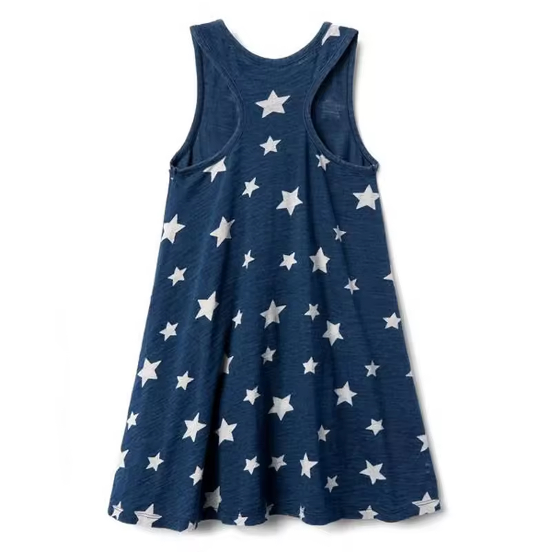 Girl's Summer Casual Sleeveless Dress with Stars Printed Knit Washed Fabric Top Tank for Children