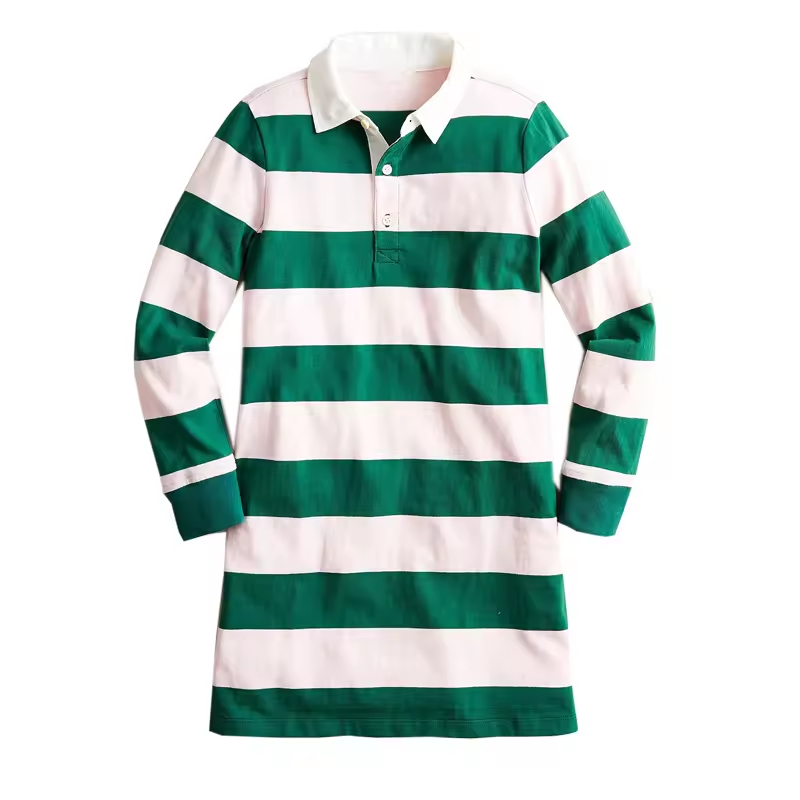 Customized Denim Women Rugby Dress with Polo Collar Halter Design for Mom Me Cotton Spandex Stripes ODM for Autumn Season Kids