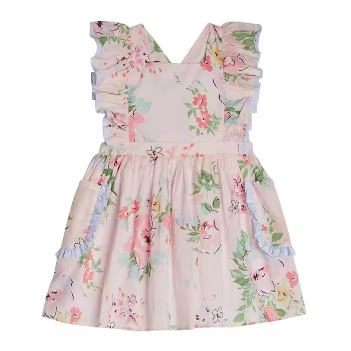 Gaoteng Guangzhou Manufacturer's Print Pattern Girls Pinafore Skirt with Ruffle Decoration Woven Fabric ODM Supply