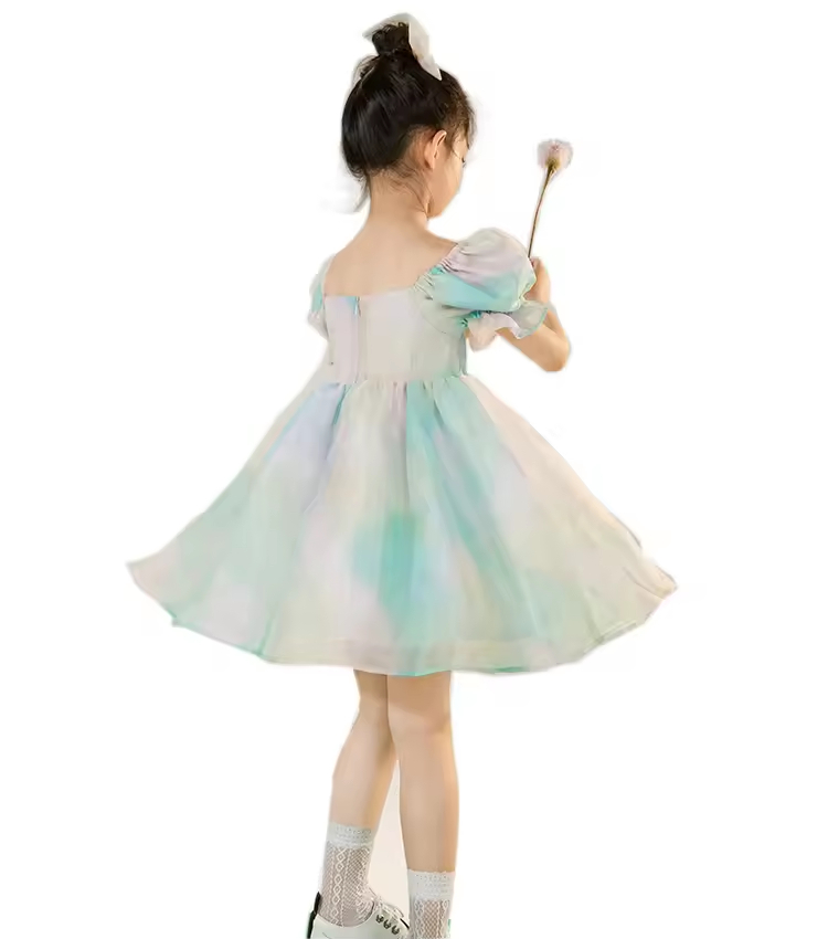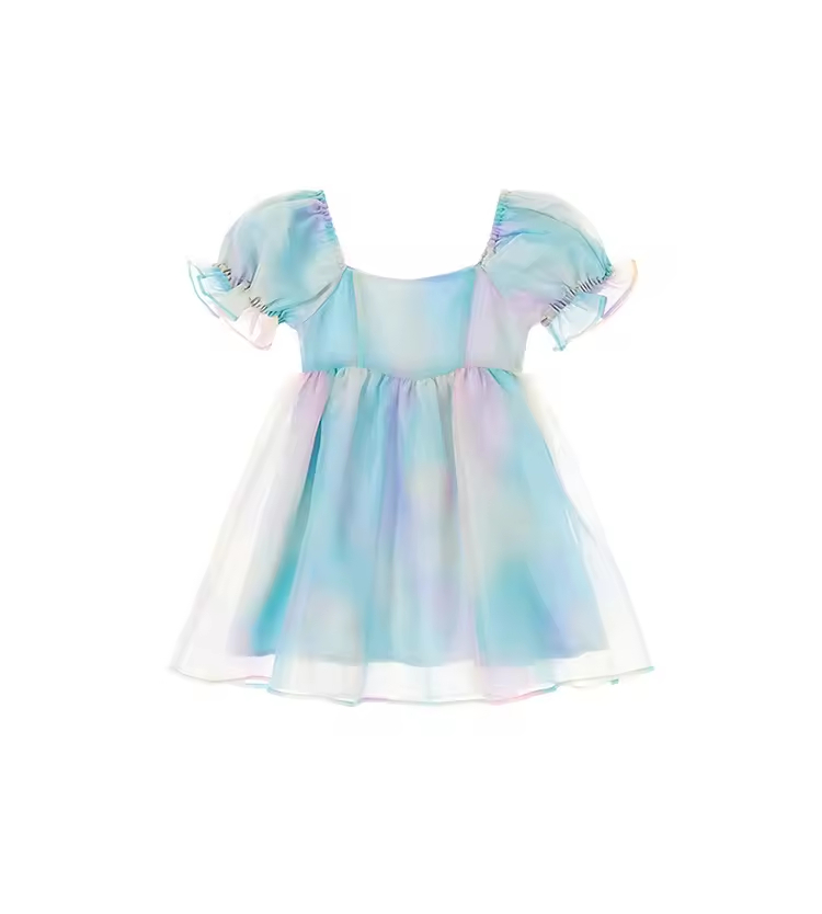 /Fashion Children Dress Tie Dye Cotton Short Puff Sleeves Girls Dresses Guangzhou Factory