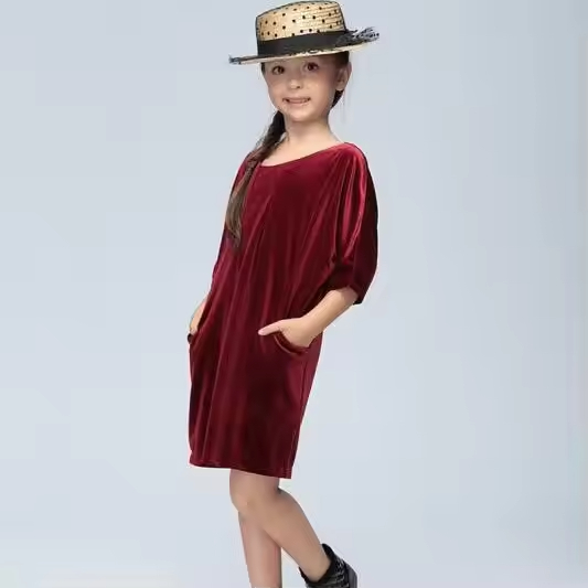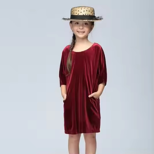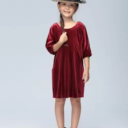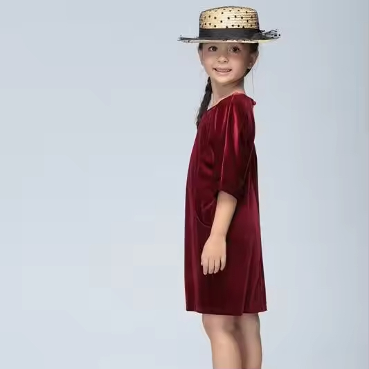 /Vintage Retro Girl Dress Long Sleeve Velvet Casual Style Solid Pattern Spanish Dresses for Children Children's Clothing Factory