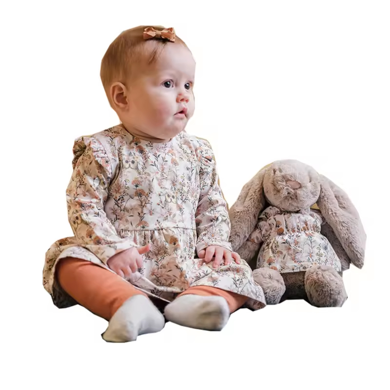 Customized Sizing Lovely Design Cotton Woven Floral Bow Casual Spring Doll Baby Matching Dresses for Toddler GirlsSpecfication
