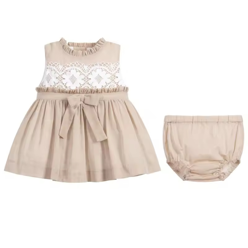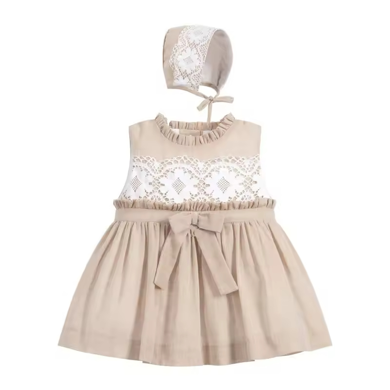 Lovely Lace Design 3 Pcs Baby Girl Dress With Hat and Bloomers 30 Years Custom Made Wholesale Children's Clothing Factory