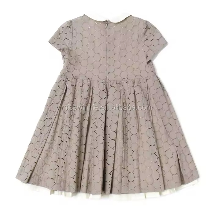 Frock Design for Baby Girls Children Short Sleeves Peter Pan Collar Dress Cotton Fabric Casual Style Guangzhou Kids Clothes