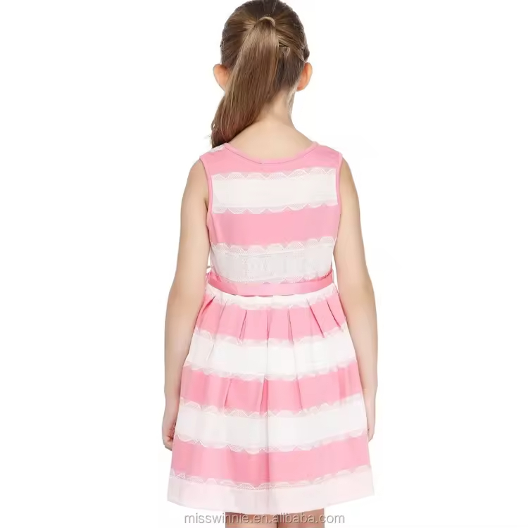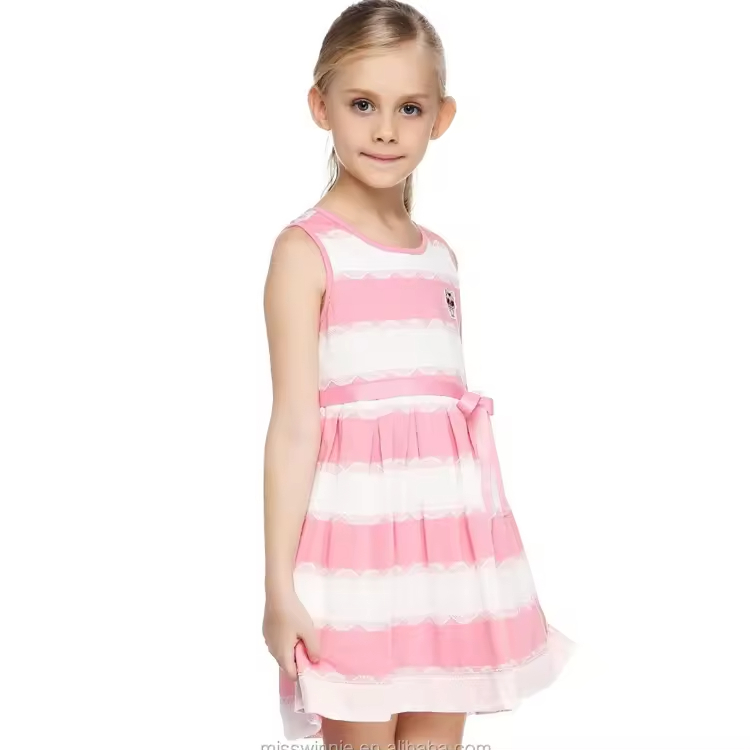 OEM Wholesale High Quality pink Kids Dress With Bow Beautiful Sweet Girls Casual Sleeveless Stripe Girls Summer Dresses 2025