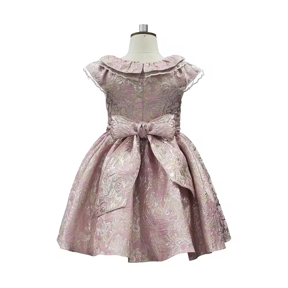 Custom Brand Round Neck Ruffle Collar Girl Dress Beautiful Jacquard Party Dresses for Girls 4-14Y