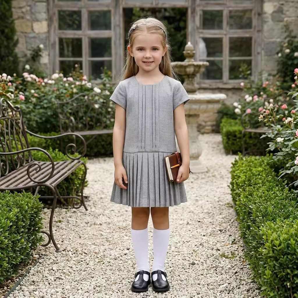1.Girls Dress in White/black color, quality cotton fabric and a vintage style.
