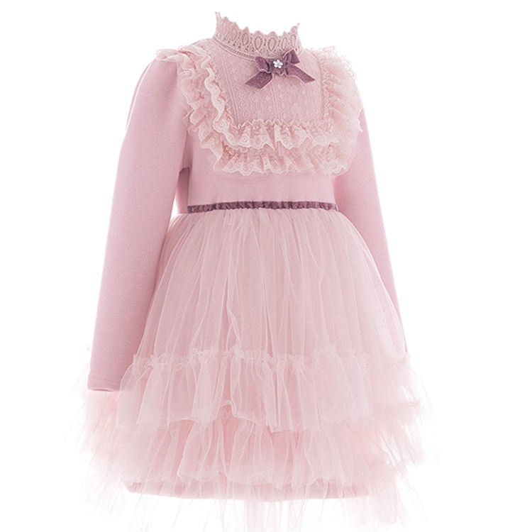 New Style High Quality Fashion Pink Cute Girls Baby Party Dresses Sweet Winter Long Sleeve Lace Tulle Baby Girl Child Dress