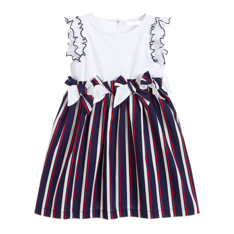European Style Flounce Sleeve Kids Dresses Beautiful Model Stripes Dresses for Girls of 10 Years Old